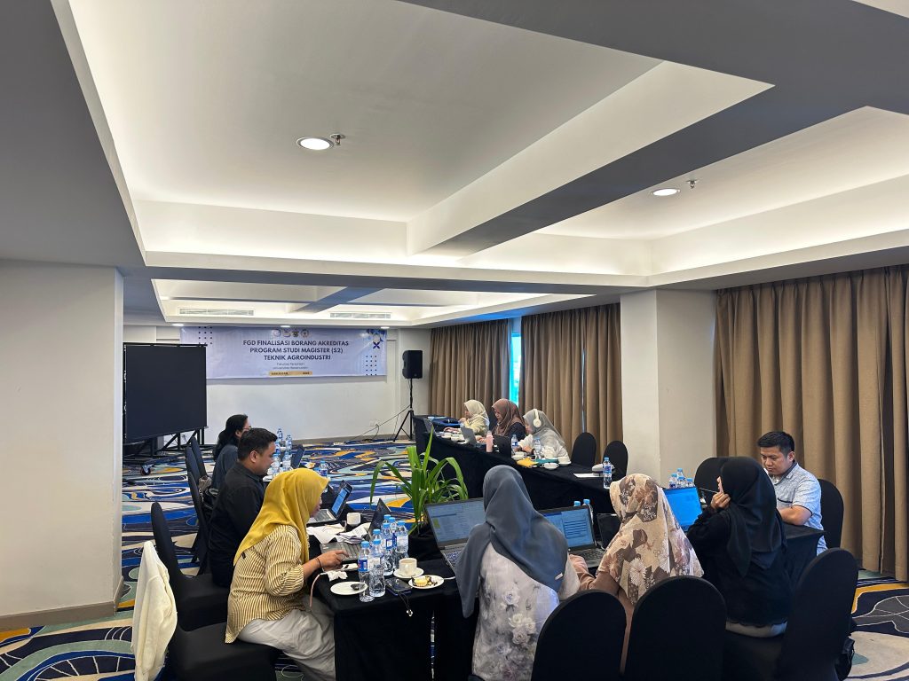 Hotel Aston Makassar, 21 Juni 2025 – Program Magister Teknik Agroindustri, Fakultas Teknologi Pertanian, melaksanakan kegiatan Focus Group Discussion (FGD) Finalisasi Borang sebagai bagian dari langkah strategis dalam mempersiapkan dokumen akreditasi. Kegiatan ini bertujuan untuk memastikan seluruh komponen borang telah tersusun secara lengkap, sistematis, serta sesuai dengan standar dan indikator penilaian yang ditetapkan oleh lembaga akreditasi yang dihadiri oleh tim Taskforce Akreditasi dan Dosen Magister Teknik Agroindustri.